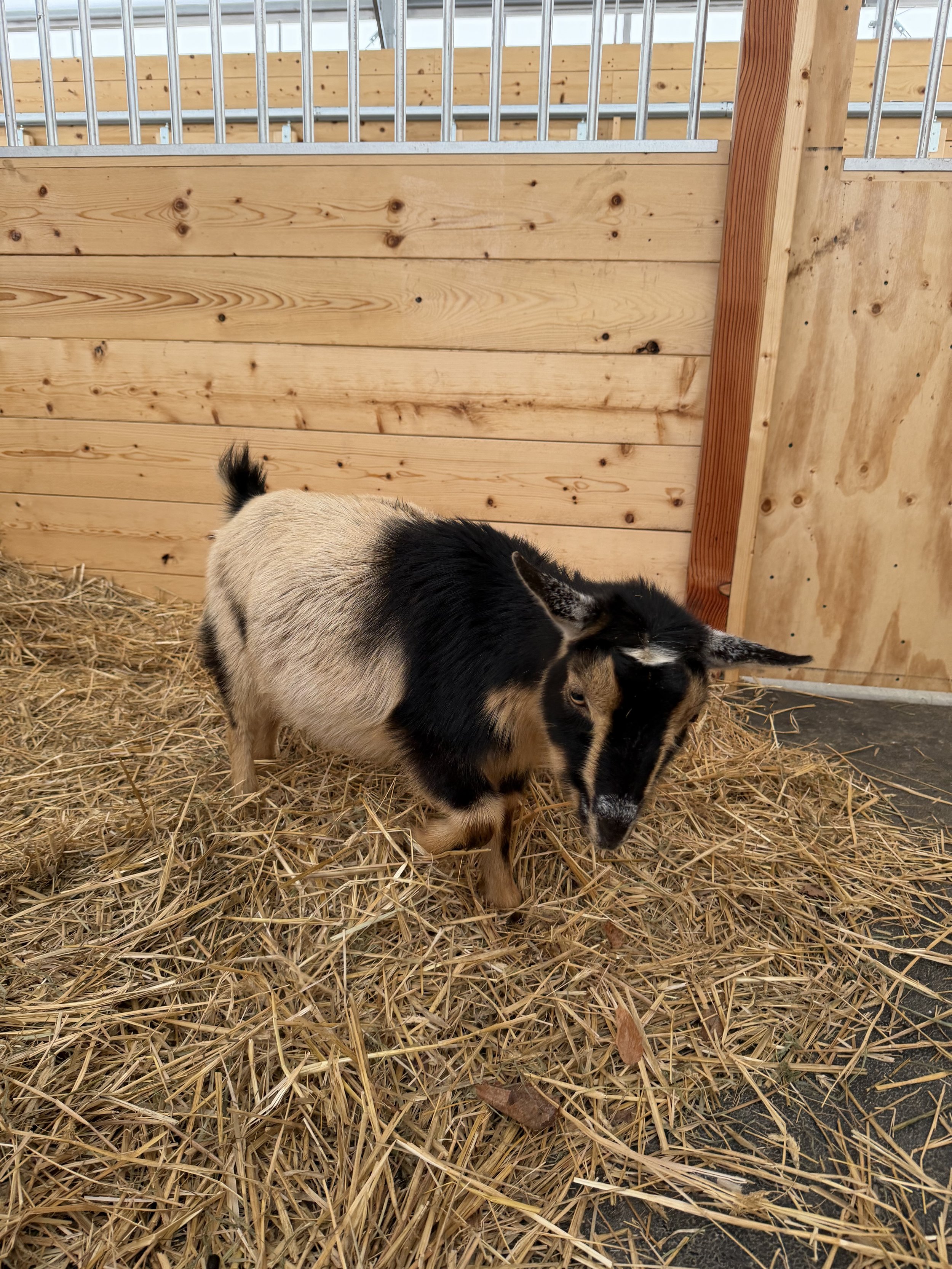 Aurora is a polled doeling with undeniable presence and visual impact. Chosen for both her beauty and structural correctness, she embodies our belief that refinement and strength should exist together. With her confident carriage and balanced build, Aurora represents the next generation of thoughtfully bred Nigerian Dwarf goats within our program.